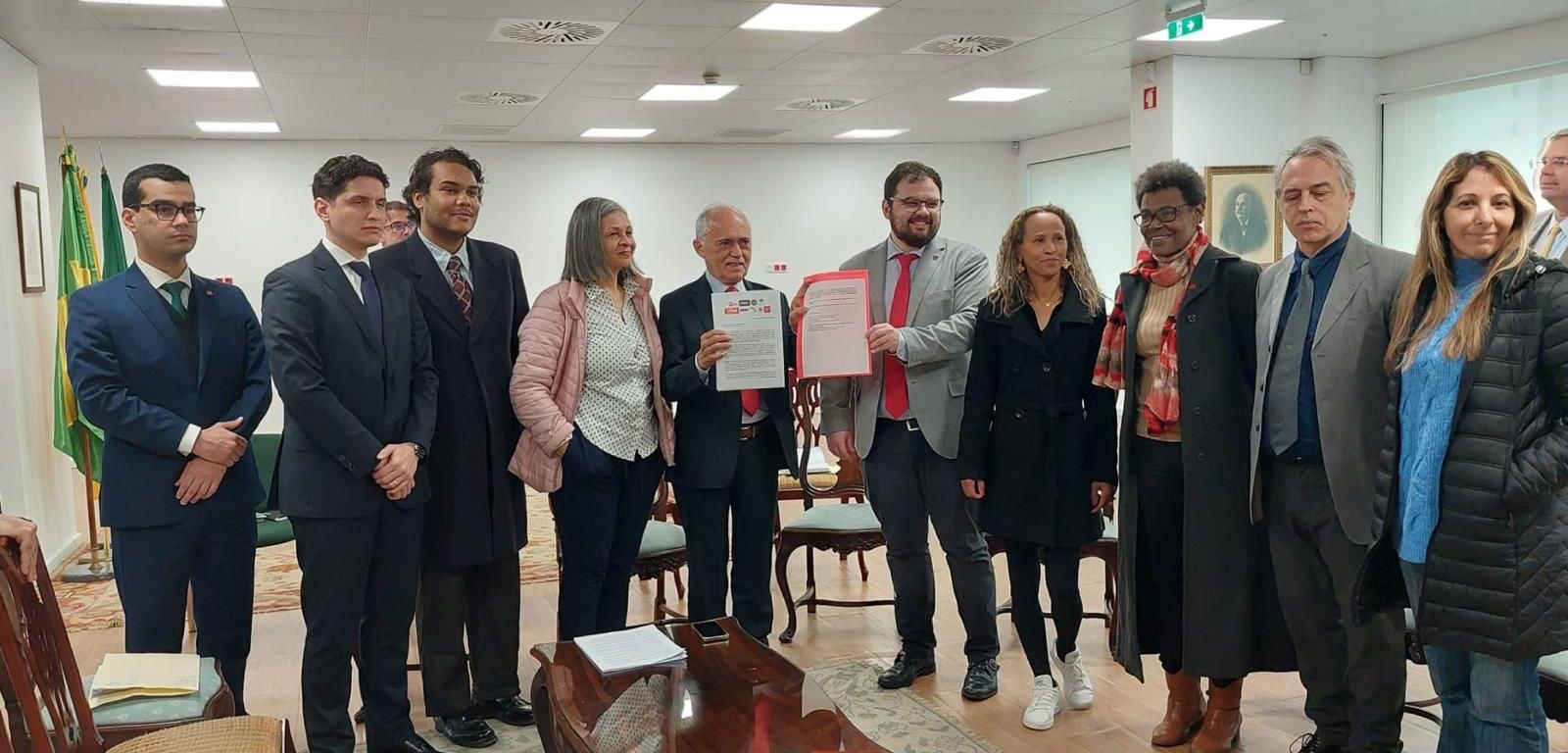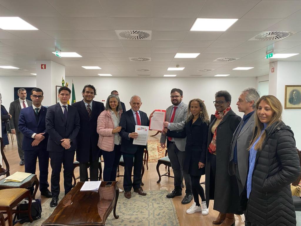 Representantes das organizações que vem reunindo junto com o Núcleo do PT em Portugal tiveram encontro com o embaixador Raimundo Carreiro, entregando carta de 9 organizações para Lula sobre os casos de violência contra a população brasileira em Portugal.