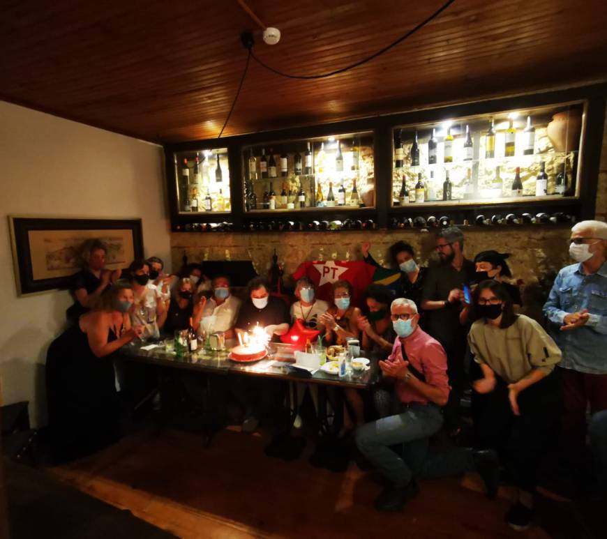 O Núcleo do PT Lisboa festejou aniversário com dezenas de militantes e simpatizantes, em jantar informal em Lisboa. O espaço “Água de Beber” recebeu a militância petista com feijoada, mandioca frita, quibe, pastéis e outras comidas. As pessoas se dividiram em várias mesas, com máscaras e álcool-gel disponibilizado pela coordenação do Núcleo, respeitando as regras de saúde pública. A festa teve bolo de aniversário e … Continuar a ler Núcleo do PT Lisboa: 27 anos de lutas